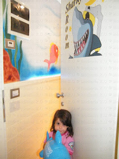 tutta a tema marino e sul letto di Lucrezia troviamo un omaggio: uno Sharky